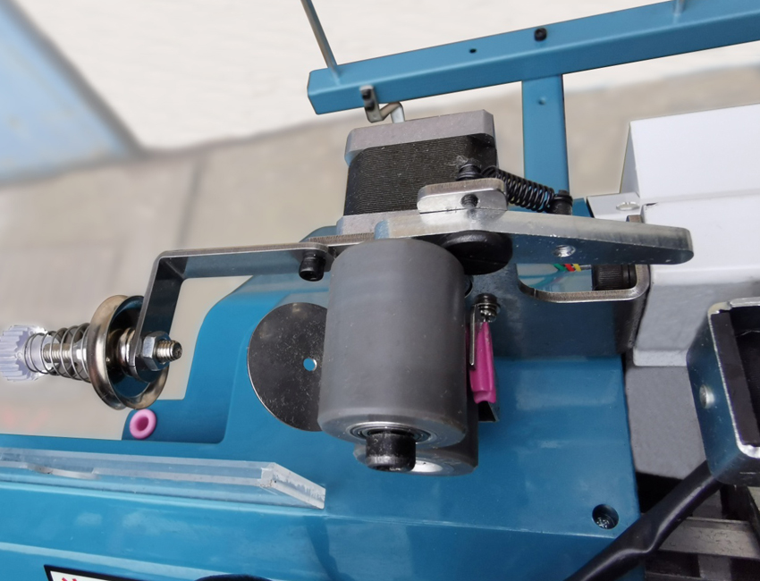 前后機頭由兩根同步帶單獨控制,并且前后同步帶輪與伺服電機同軸轉動,受力更均勻,使快速移動的機頭平穩運行。
