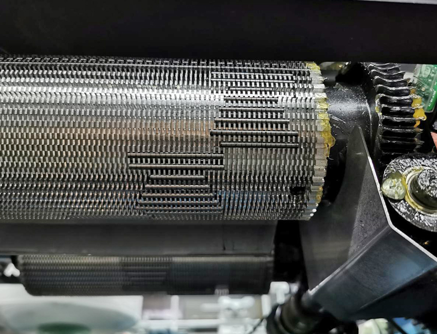 滾筒采用蝸輪蝸桿選針系統,正反轉的新功能為手套編織時的選針提供了更多可能性,使織物的花型更加豐富。滾筒可以在任意位置實現超快速復位(速度是500 RPM),無需換高低針腳,可以實現橡筋一隔一,一隔二等自由切換。